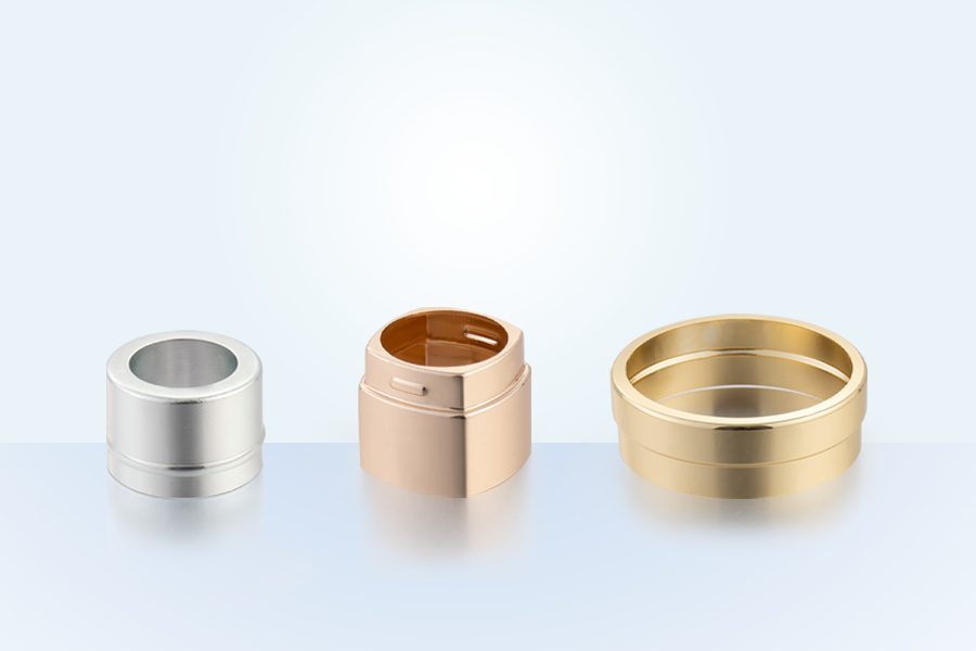 Den midtre ringen i aluminium i kosmetisk sett tilbehør spiller flere roller på den kosmetiske flasken, for eksempel dekorasjon og skjønnhet, beskyttelse og stabilitet, praktisk og bekvemmelighet og merkevare. Det forbedrer ikke bare den generelle kvaliteten og klassen på produktet, men gir også en mer behagelig og praktisk bruksopplevelse for forbrukerne.